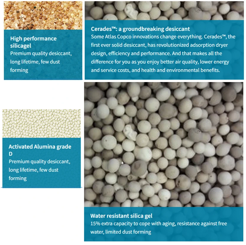 بسته به نقطه شبنم فشار، خشک کننده ها را می توان از آلومینا، سیلیکاژل یا مواد غربال مولکولی ساخته شد. حداقل نقطه شبنم فشار می تواند به -70 ℃ برسد.