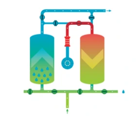 هنگامی که یک برج در حالت جذب است، برج دیگر در حالت بازسازی است. بازسازی جاذب گرمای بخاری برقی و مقدار کمی هوای فشرده تمام شده را مصرف می کند. برای مدل با مصرف هوای صفر، هوای احیا شده قابل بازیافت است.