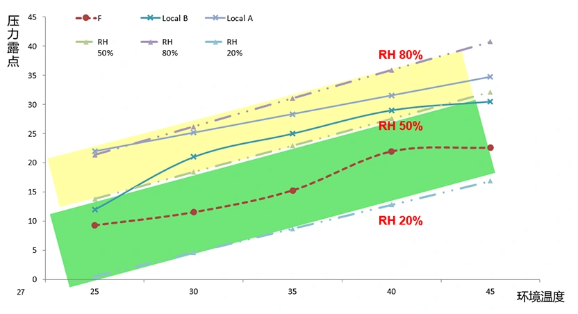 همانطور که در داده های اندازه گیری شده در زیر نشان داده شده است، با فشار ورودی هوای فشرده 7 بار، دمای ورودی 35 درجه سانتیگراد، نقطه شبنم فشار 7 درجه سانتیگراد و دمای خروجی نهایی 25 درجه سانتیگراد، رطوبت نسبی هوا 30 درصد است که به طور موثر از خوردگی خطوط لوله و تجهیزات استفاده کننده از هوا جلوگیری می کند.