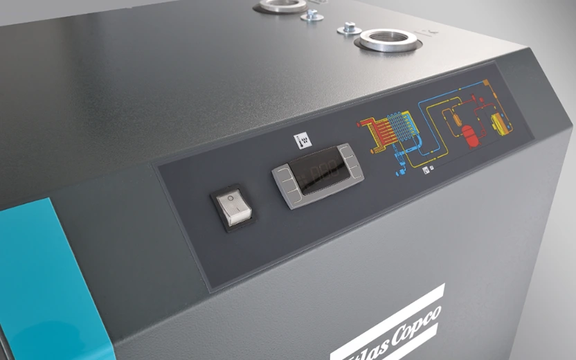 خشک کن هوای یخچالی نوع F اطلس کوپکو از یک مبدل حرارتی سه در یک استفاده می کند که جداکننده های هوا/هوا، هوا/مبرد و آب را با هم ترکیب می کند. این به طور موثر آب مایع جدا شده پس از خنک شدن را حذف می کند و هوای فشرده را از قبل خنک می کند و راندمان تبادل حرارت را بهبود می بخشد.