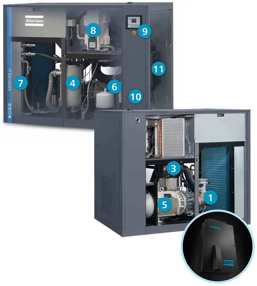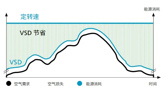 مصرف انرژی کمپرسور بیش از 70 درصد از کل هزینه چرخه عمر را تشکیل می دهد و تولید هوای فشرده بیش از 40 درصد از کل قبض برق نیروگاه را مصرف می کند. برای کاهش مصرف انرژی، اطلس کوپکو کمپرسور هوای روغن کاری شده بدون روغن VSD را توسعه داده است. فناوری VSD نه تنها باعث صرفه جویی زیادی در انرژی در این فناوری می شود، بلکه برای محافظت از تولیدات خود در آینده نیز انرژی زیادی را حفظ می کند. اطلس کوپکو طیف گسترده ای از کمپرسورهای هوا با سرعت متغیر (VSD) را در بازار ارائه می دهد.