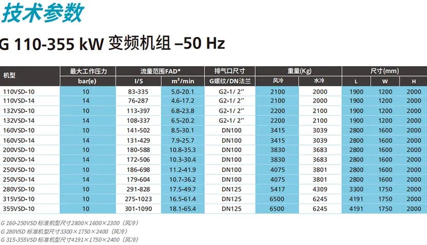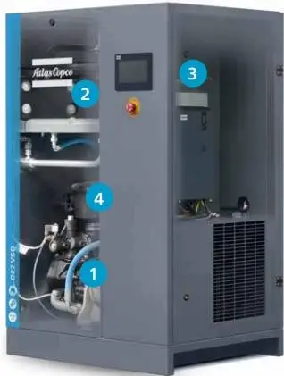 کمپرسور هوا با فرکانس متغیر VSD اطلس به طور ویژه برای عملکرد مداوم طراحی شده است. سیستم درایو از یک موتور آهنربای دائم کارآمد استفاده می کند که می تواند به اثر خنک کننده روغن عالی برسد. فن آوری VSD می تواند تا 35٪ صرفه جویی در مصرف انرژی داشته باشد و ردپای کوچکتر آن انعطاف پذیری نصب را تضمین می کند.
