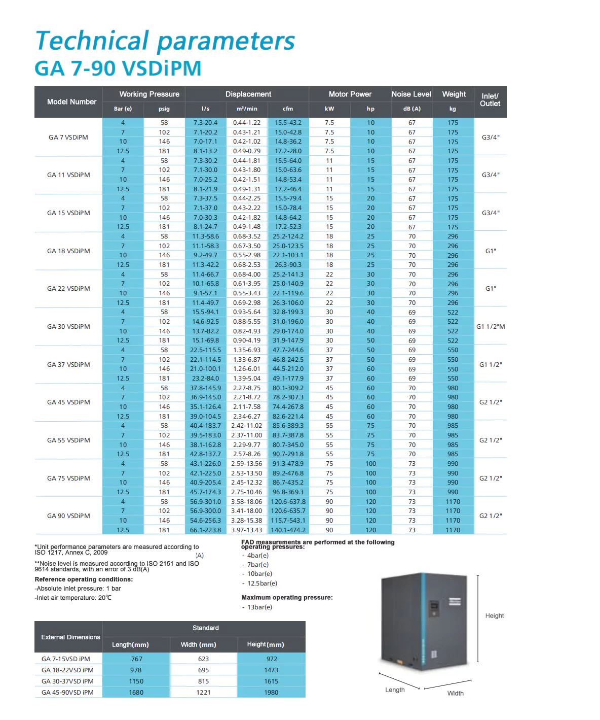 سری VSDiPM اطلس کوپکو می تواند به طور خودکار سرعت موتور را برای کنترل دقیق و برآورده کردن نیازهای مصرف گاز مشتریان تنظیم کند. در مقایسه با کمپرسورهای با سرعت مشخص شده، کمپرسور هوا با فرکانس متغیر VSD به طور متوسط تا 35 درصد در مصرف انرژی صرفه جویی می کند.