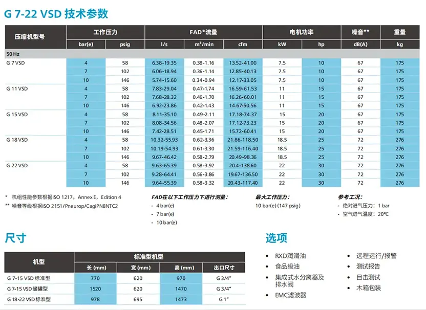 فناوری درایو با سرعت متغیر G7-22 VSD سرعت موتور کمپرسور را قادر می سازد تا با نیاز هوای شما مطابقت داشته باشد.