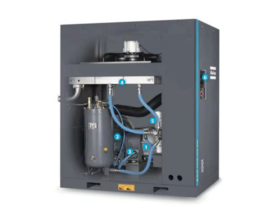 5. تمامی کمپرسورهای Atlas Copco G(L)VSD تحت آزمایش و گواهی EMC قرار گرفته اند. عملکرد کمپرسور بر دستگاه های خارجی تأثیر نمی گذارد و بالعکس.